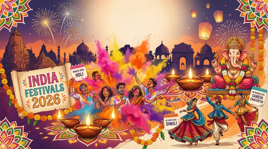 India’s cultural tapestry comes alive through its festivals, each celebration offering travelers an authentic glimpse into traditions that span millennia. Planning your 2026 journey around these vibrant holidays transforms a standard vacation into an immersive cultural experience. With over 40 major festivals celebrated across the nation’s 28 states and 8 union territories, strategic timing can mean the difference between witnessing everyday life and experiencing the extraordinary.